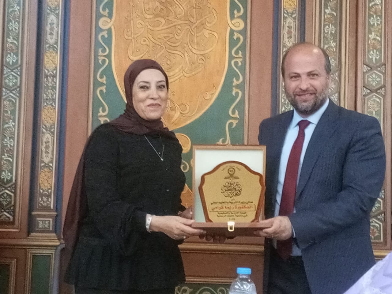 بعدها تم تقديم دروع تقديرية لممثل وزيرة التربية د خالد فايد