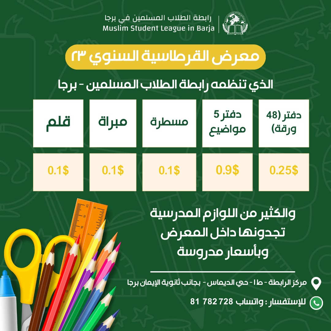 يشار الى ان المعرض يستمر يومي السبت والأحد من الساعة 4 بعد الظهر..