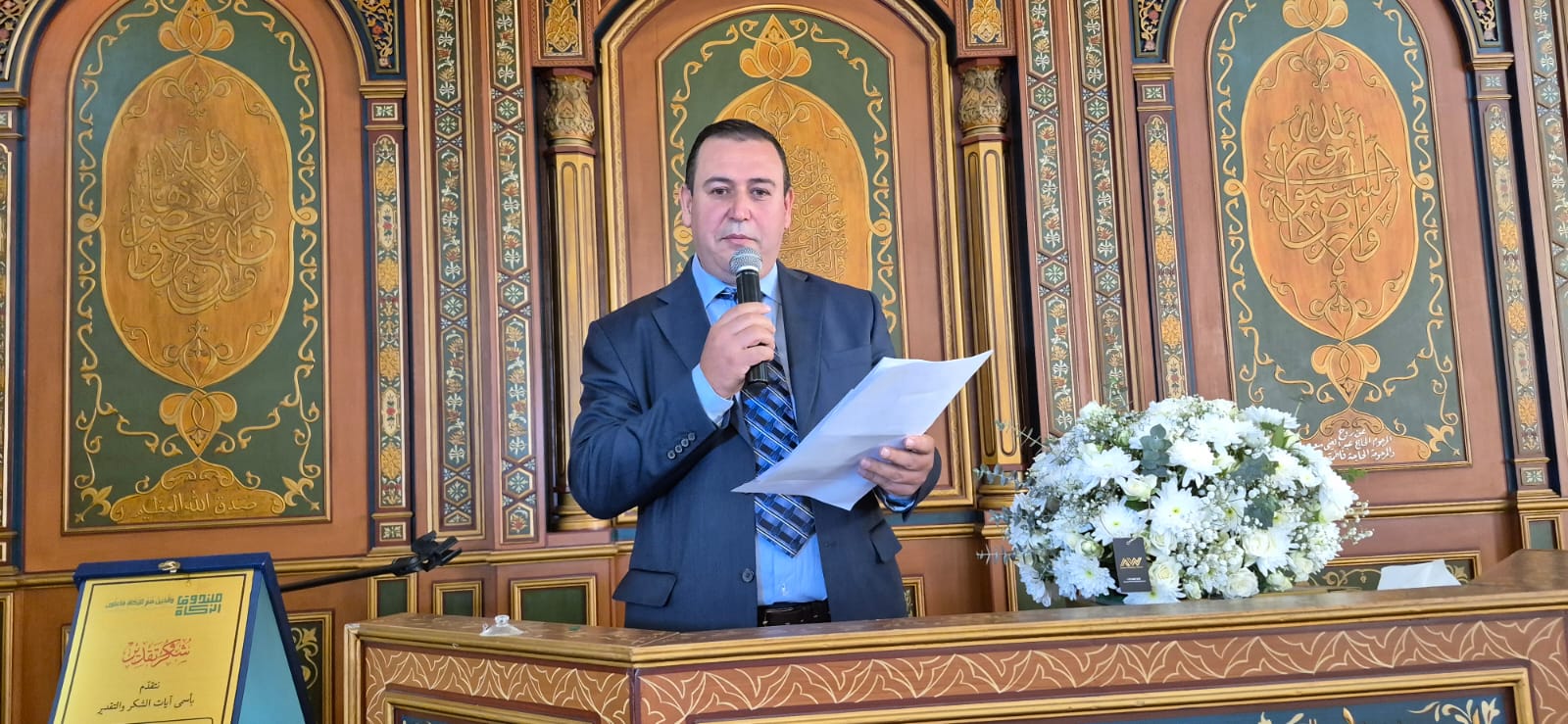 وتوجه باسم لجنة المسجد بالشكر للمهندس سعد الذي قدم لقاعة المسجد خلاصة فنه وابداعه وجعل منها تحفة فنية واحتسبها صدقة جارية عن روح والديه وزوجته .